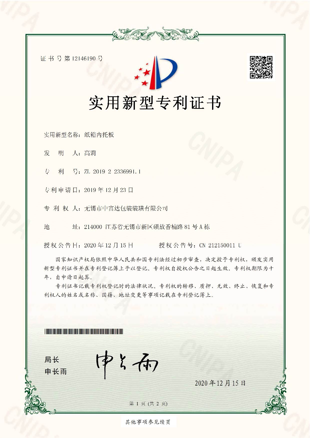 公司已通过十五项知识产权,下列为部分展示!